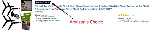 - 3, BSLINO BED SHEET SUSPENDERS STRAPS: Built-in plastic clenching system protects fabric from harm; Wider elastic provides stable and stronger grip for heavy duty purpose; Lift mattress and fasten one clip to edge of sheet . Repeat above for all 4 corners. Perfect Fitted Bed Sheet and mattress Cover Fastening System; fitted sheet holder,bed sheet holder straps,bed sheet corner clips grippers straps,adjustable elastic sheet straps grippers,sheet fasteners;Sheet suspenders grippers