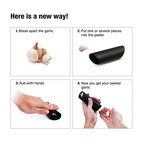 SOLID STAINLESS STEEL. Since the garlic press is made from solid, high quality stainless steel, and the peeler tube from tough FDA approved silicone, these cooking gadgets will last as long as you need them.