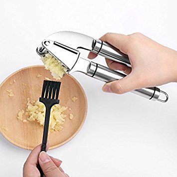 RELIABLE AND DURABLE; Garlic mincer is 100% stainless steel; Cleans up in a snap, just clean under running water or in the top rack of dishwasher. And we have a brush to help you clean up the residue.