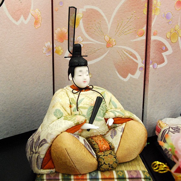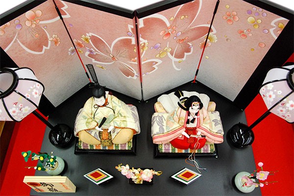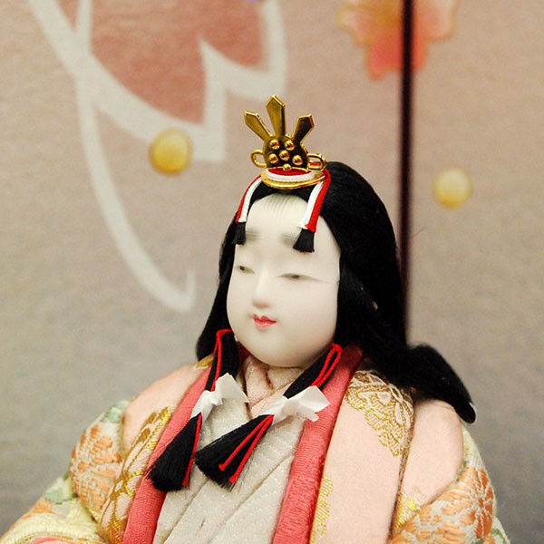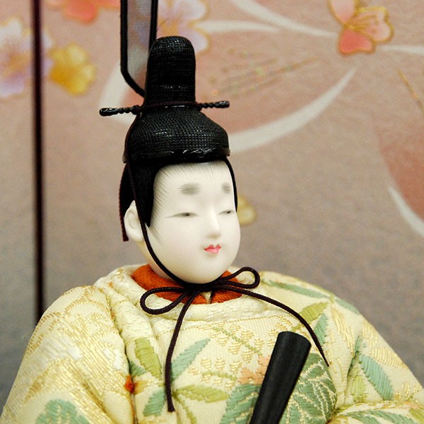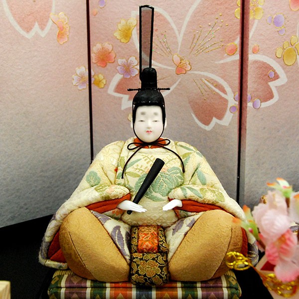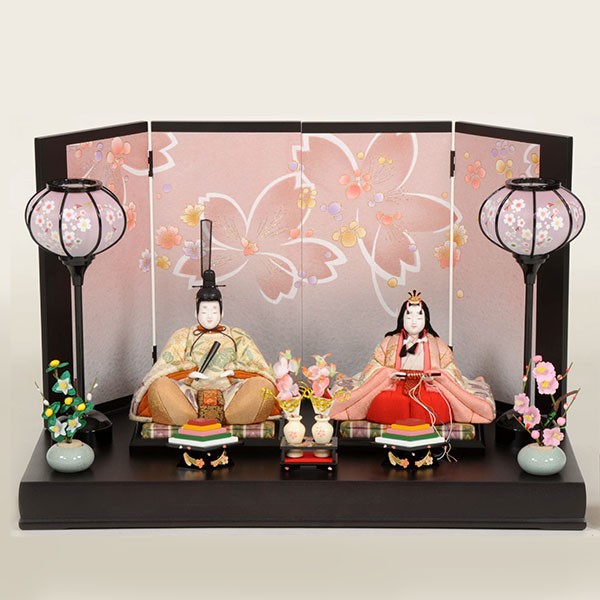 ・台座・屏風等には落ち着いた色目の雛人形セット。