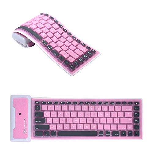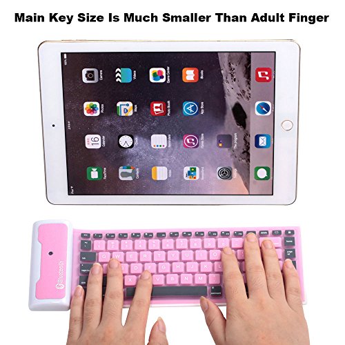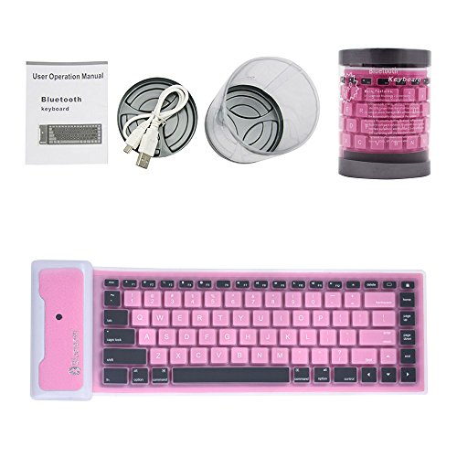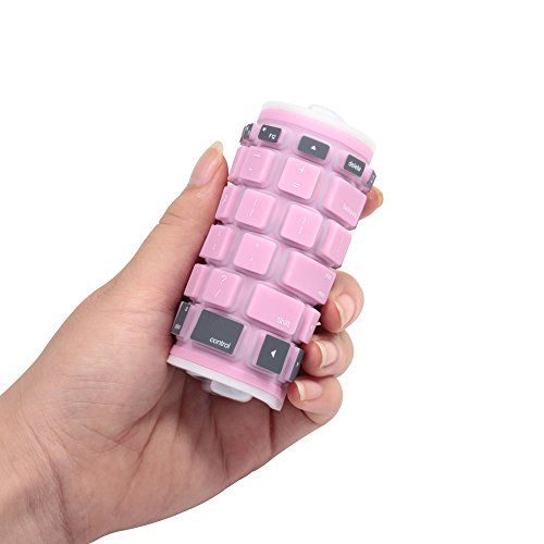 Yuzihan iPad Mini iPad 2 3 4 iPad Air Pro Roll up Mini Bluetooth keyboard Portable Silicone Rollup Waterproof flexible keyboard For IOS, Windows Android Tablets Phones Pink