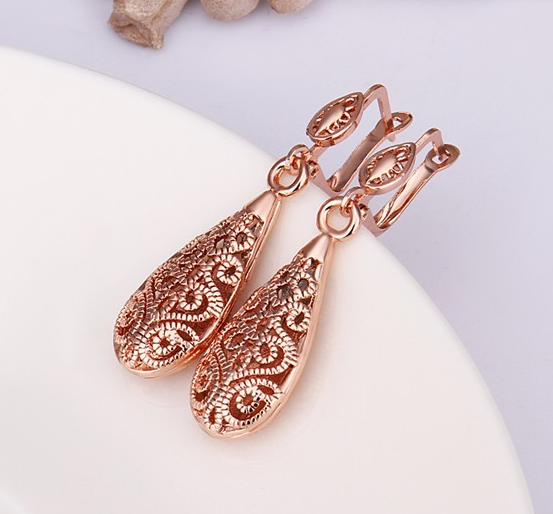 anting anting mawar emas panjang untuk wanita Fashion perhiasan 18K rose gold plated flower pierce decline long earrings for women fashion jewelry JEW SJA0846535262 GHJ qty004