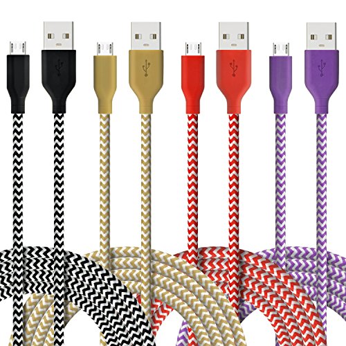 Micro USB Cable, 4-Pcs 6ft(2M)Fasgear Premium Nylon Braided Tangle-Free USB 2.0 High Speed Data Sync Charger Cables For Samsung Galaxy S7, S6, S5, Note 4, HTC M9,and more (Black,Golden,Red,Purple)