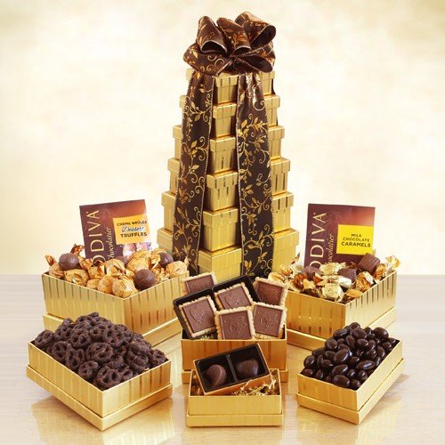 -. Title : Dazzling Godiva Chocolate Gift Tower for Fathers Day