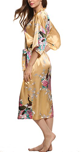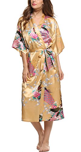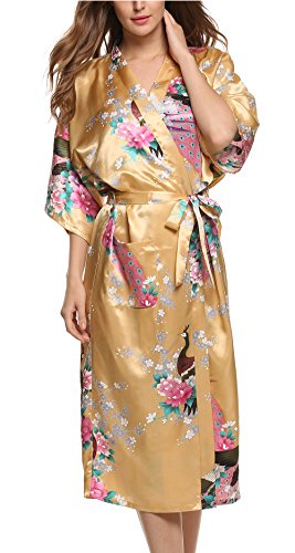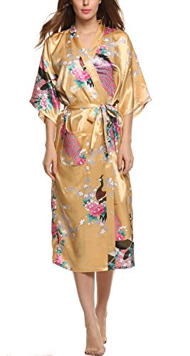 Avidlove Women's Robes Peacock and Blossoms Kimono Silk Nightwear Long Style (M = US S, Style1--Yellow (FBA))