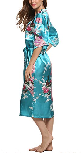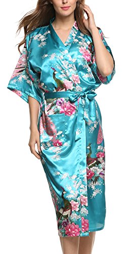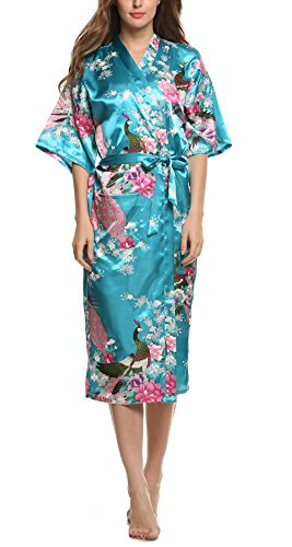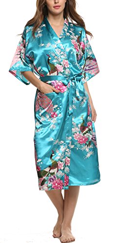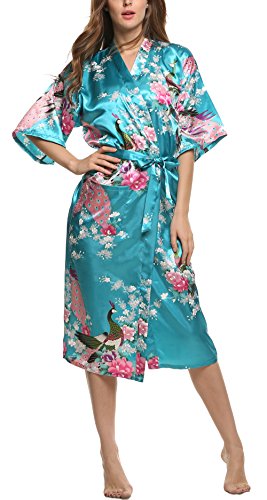 Avidlove Women's Robes Peacock and Blossoms Kimono Silk Nightwear Long Style (L = US M, Style1--Sky Blue (FBA))