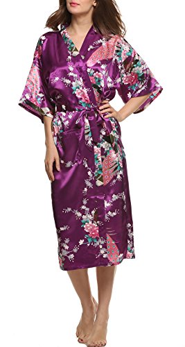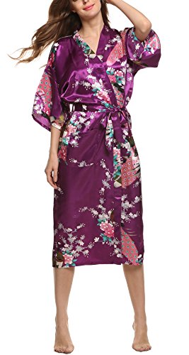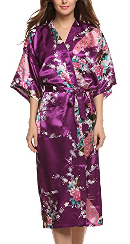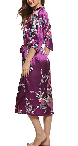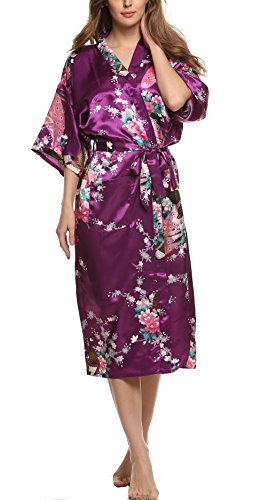 Avidlove Women's Robes Long Classic Satin Lounge Wedding Kimono Nightwear Dark Purple XL