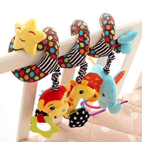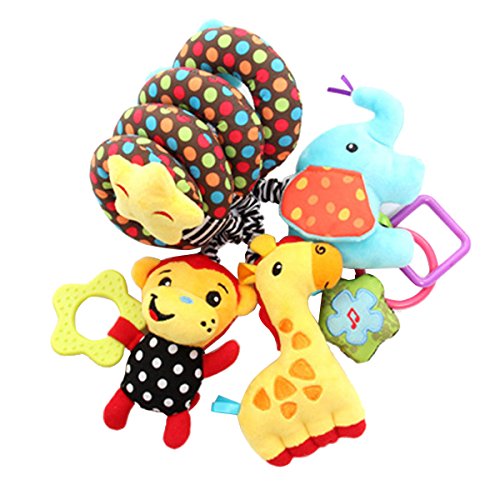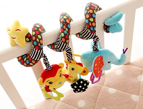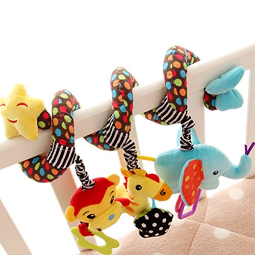 Spiral shape attaches easily to strollers, cribs, and car seats