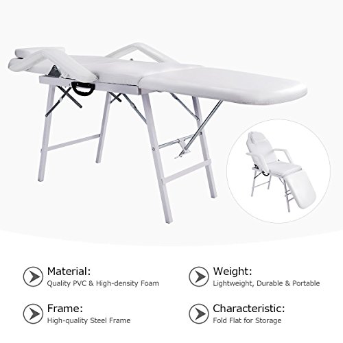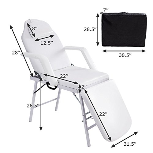 -. Binding : Health and Beauty -. Brand : Giantex -. EAN : 0768421123370 -. Feature : 【Adjustable Footrest and Back】 2 folds can adjust to the height you want, the foot of the bed can also be made completely horizontal or even bent up to 45 degrees down. The armrests are removable but also fit the reclining position. It could suit for different guests requirements. / 【Perfect Detail Workmanship】-- High quality sponge padded and wire connecting procedure which could make this cage more durable and solid. And the structure follows the scientific P.R.Inciple and is strong enough to hold cats to play. / 【Portable Carry Design】3 fold foam padding massage table, two handles on the side parts and one bag included, the weight of this item is not heavy which is portable to carry. It's convenient to take to different places to work. / 【Easy to Assemble】-- This product has straight forward illustrations and descriptions. Every screw and pin has its own code and easy to understand the assemble progress. / 【Solid Structure】--Structured with heavy-duty wood for extended durability, and the structure follows the scientific P.R.Inciple and is strong enough to hold 220 lbs weight. -. IsAdultProduct : 0 -. IsAutographed : 0 -. IsMemorabilia : 0 -. Label : Giantex -. Manufacturer : Giantex -. Model : 73" Portable Facial Bed -. MPN : 73" Portable Facial Bed -. PackageQuantity : 1 -. PartNumber : 73" Portable Facial Bed -. ProductGroup : Health and Beauty -. ProductTypeName : HEALTH_PERSONAL_CARE -. Publisher : Giantex -. Studio : Giantex -. Title : Giantex73" Portable Tattoo Parlor Spa Salon Facial Bed Beauty Massage Table Chair -. UPC : 706001233637