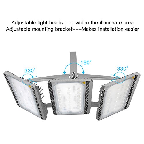 - 【Larger Lighting Area】This adjustable super bright Triple-head large LED security area Lights features 300°beam angle and offers more than 600sq.yd illuminated coverage when being wall mounted at 20ft.