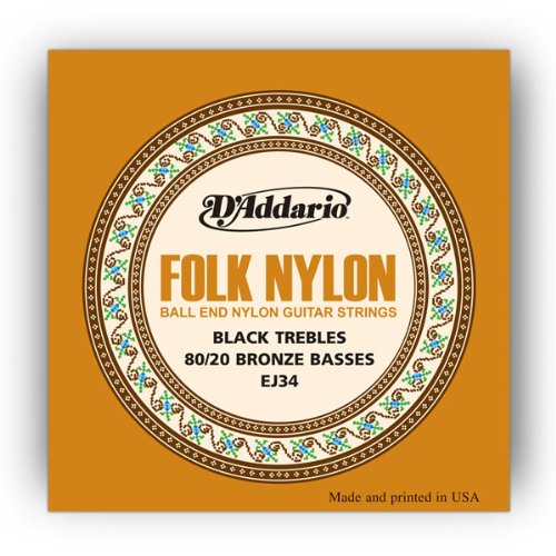 D'Addario EJ34 Folk Nylon Guitar Strings, Ball End, 80/20 Bronze/Black Nylon Trebles