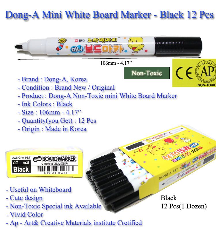 Mini White Board Marker - Black - 12 Pcs