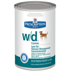 -. Binding : Misc. -. Brand : Hill's Pet Nutrition -. Department : dog-veterinary-diets -. EAN : 0052742701714 -. Feature : balanced and complete dog food that promotes a healthy body weight in your pet / Hill's w/d dog food is formulated with extra carnitine and protein to increase your canine's metabolism / stabilizes blood glucose in diabetic dogs, and contains extra fiber to promote feelings of fullness -. Label : Hill's -. Manufacturer : Hill's -. MPN : 202103516 -. PackageQuantity : 1 -. PartNumber : 202103516 -. ProductGroup : Pet Products -. ProductTypeName : PET_SUPPLIES -. Publisher : Hill's -. Studio : Hill's -. Title : Hill's Prescription Diet w/d Canine Low Fat - Glucose Management - Gastrointestinal Canned Food 12/13-oz cans -. UPC : 052742701714