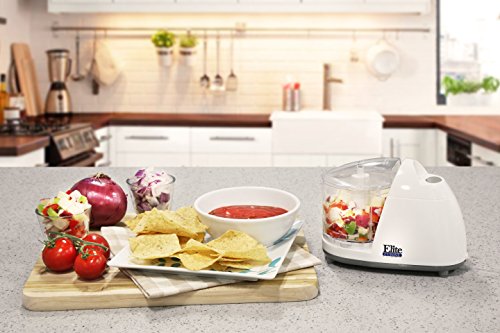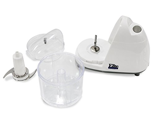 Elite Cuisine EMC-001 Maxi-Matic 1.5 Cup Mini Food Chopper with Stainless Steel Blades and Safety Lock Cover, White