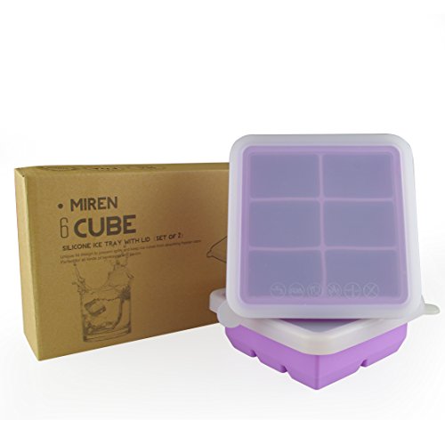 Mirenlife 6 Cube Premium Silicone Ice Cube Tray with Lid, Set of 2, Macaron Purple