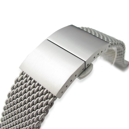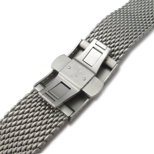 -. Title : 20mm 316L Stainless Steel Mesh Watch Bracelet, Solid End Lug, Dome Deployant clasp, BB
