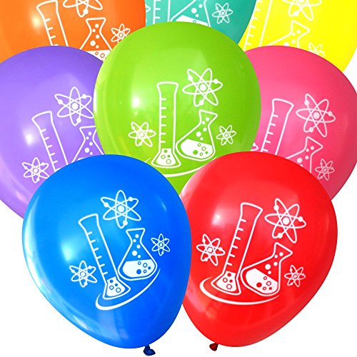 Mad Science Party Balloons - Flasks and Atoms (16 pcs, Deluxe Two-Sided) (Assorted)