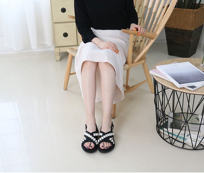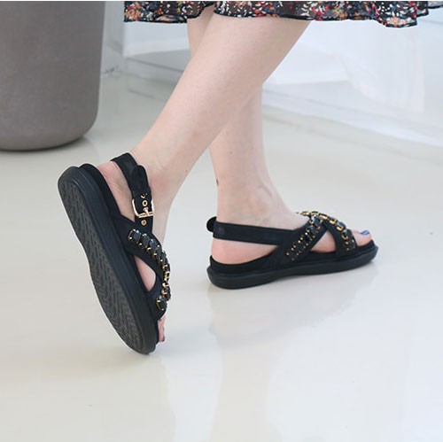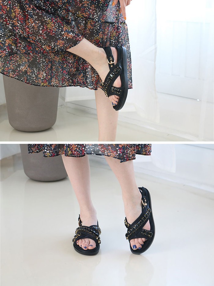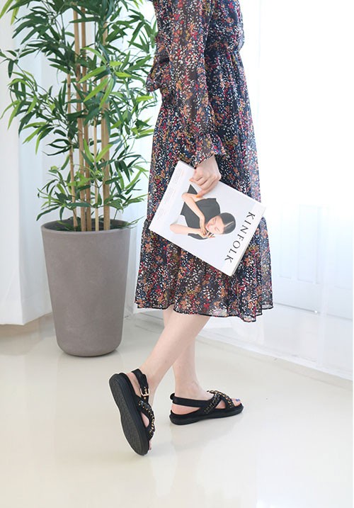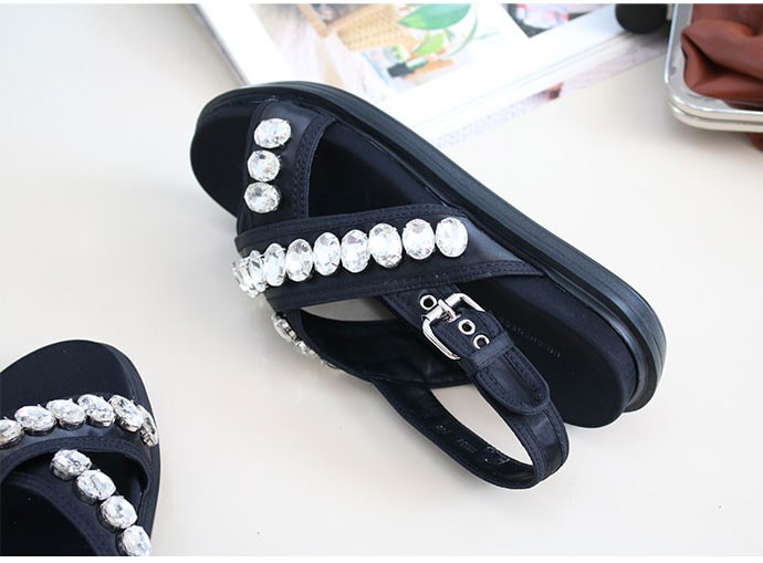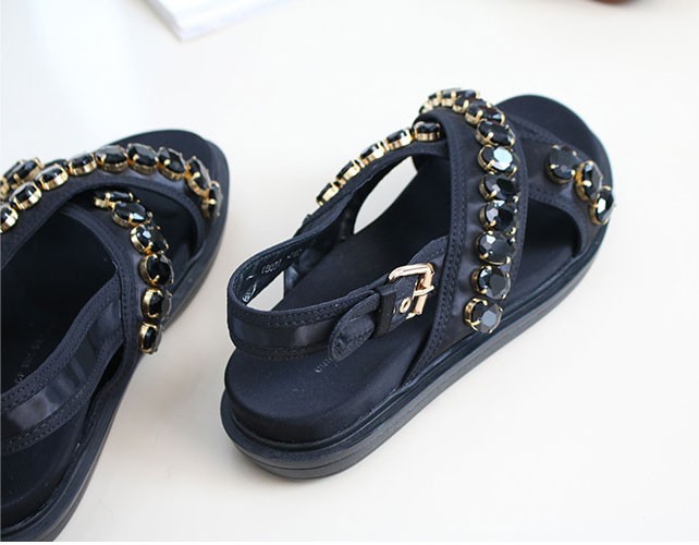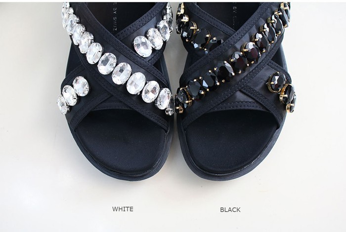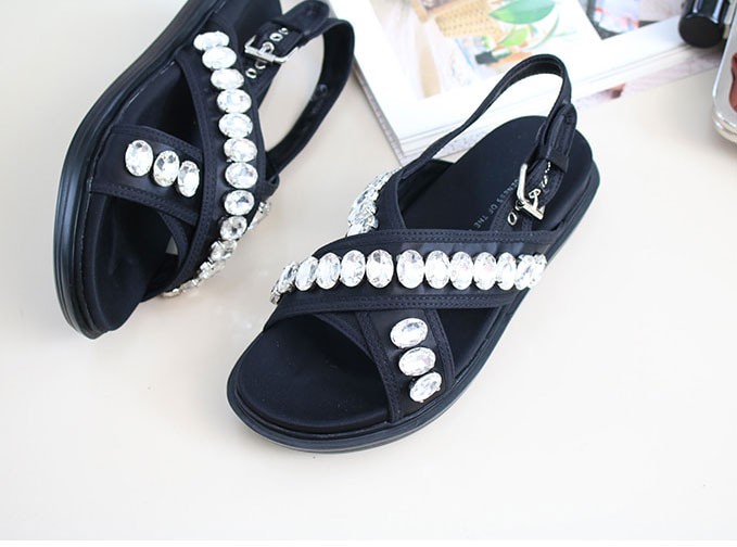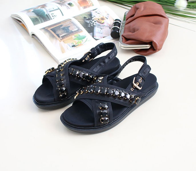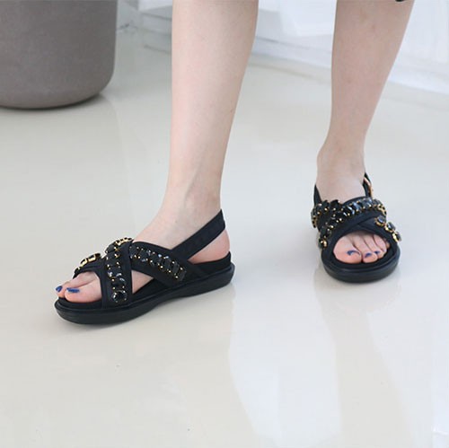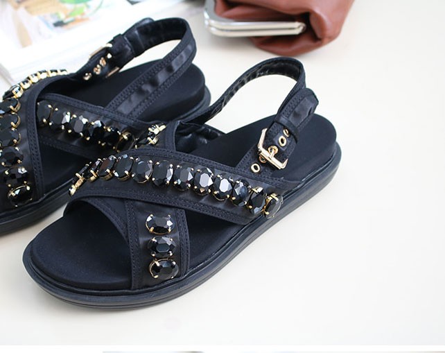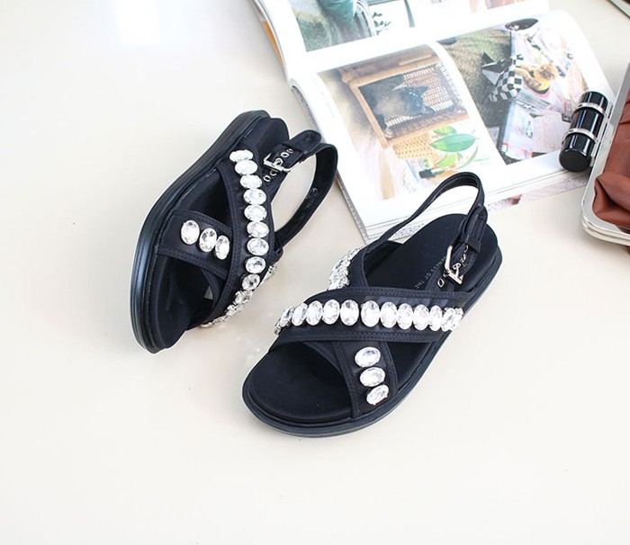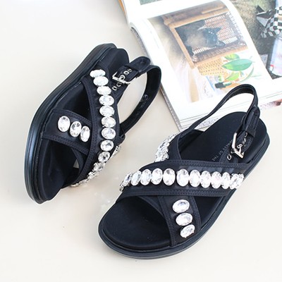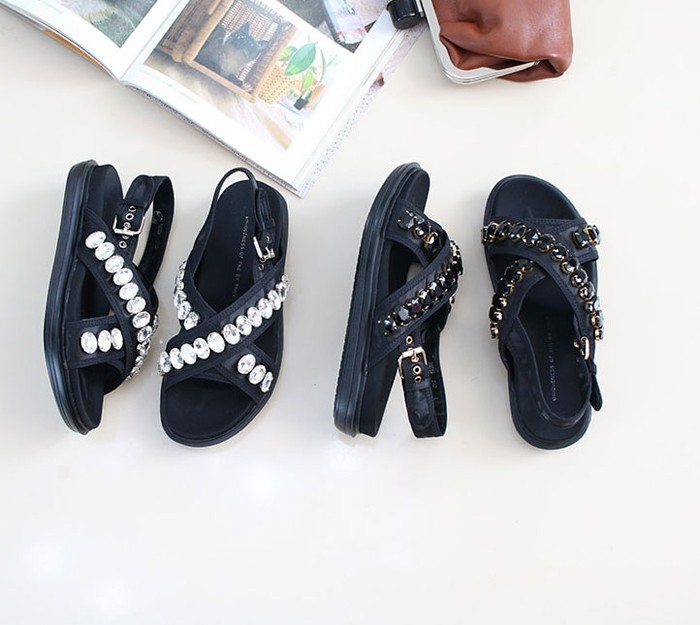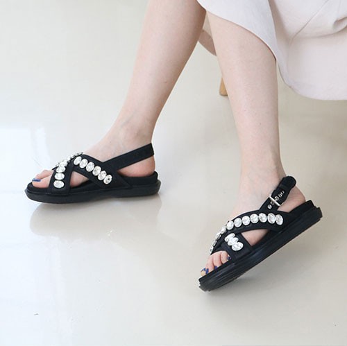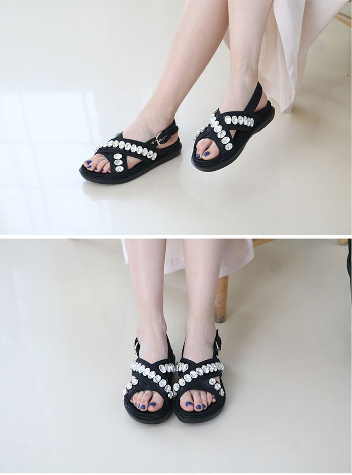 商品名:サンダル レディース ペタンコ クロスストラップ ビジュー スリングバック 2018 春 ファッション 靴 婦人靴