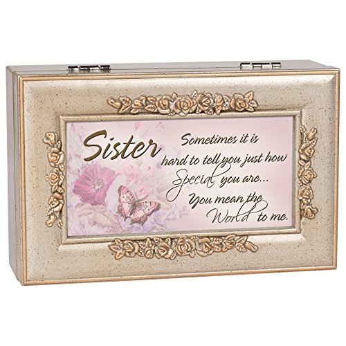 Sister You Mean The World Champagne Silver Petite Rose Music Box Plays Wind Beneath My Wings