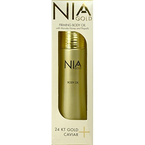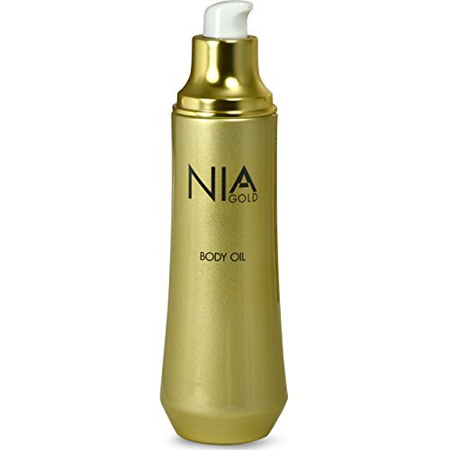 Nia Gold body oil is packed with ingredients to help soothe your skin. Vitamin E and French Sea Salt detoxify your skin while marine-derived extracts help reduce the appearance of cellulite and stretch marks. Discover the rejuvenating power of Pure 24 KT Gold.