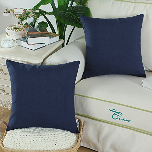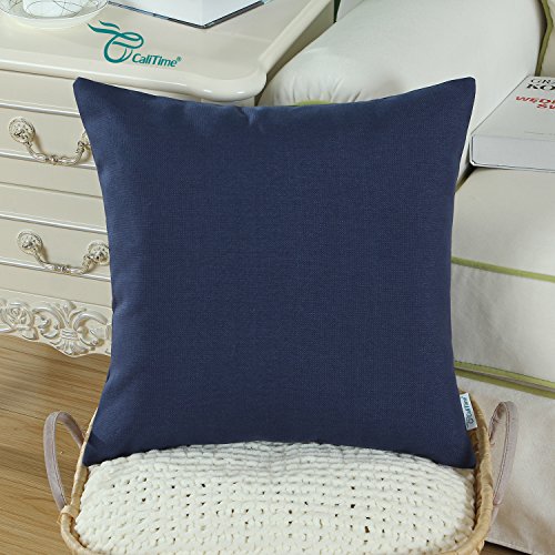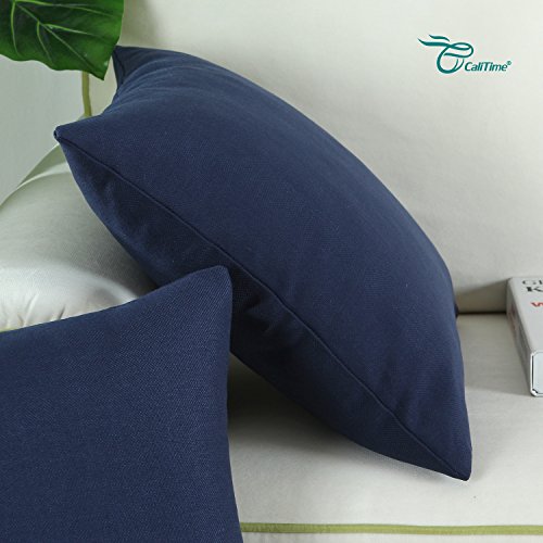 Pack of 2 CaliTime Throw Pillow Covers 18 X 18 Inches, High Class Faux Linen Solid Color, Navy