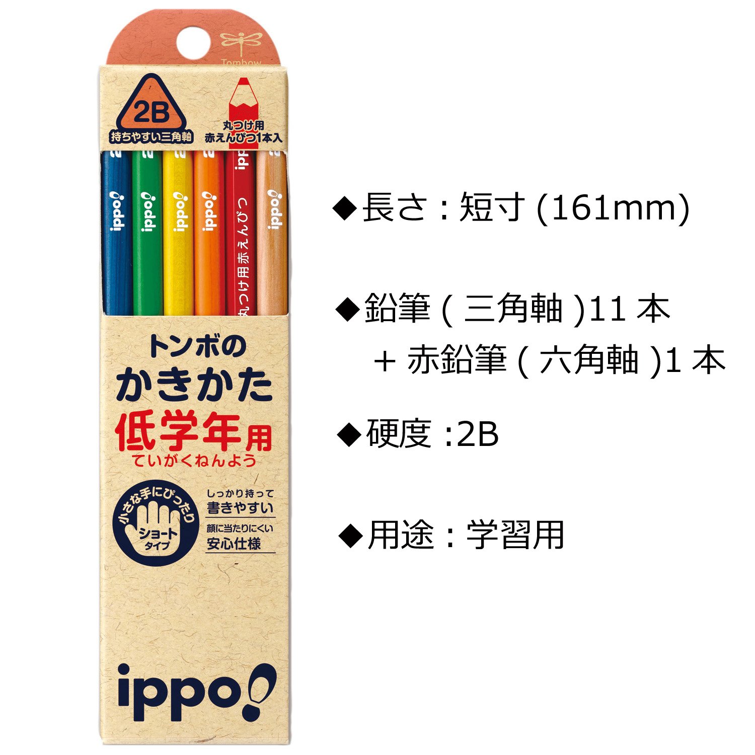 Tombow ippo! Lower grades for writing pencil 2B triangle axis MP-SENN03-2B Natural N03 12 pieces