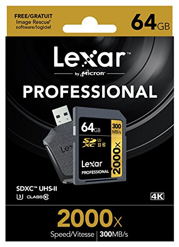 Lexar Professional 2000x SDHC/SDXC UHS-II cards let you quickly capture and transfer high-quality photos and 1080p full-HD, 3D, and 4K video, with a read transfer speed up to 2000x (300MB/s). The cards leverage UHS-II technology (UHS Speed Class 3 (U3)) for high-speed performance. And with the included SD UHS-II card reader, you'll power through post-production with high-speed card-to-computer file transfer. This dramatically accelerates workflow from start to finish, so you can save time and get back to the business of photography. Cards include downloadable Image Rescue software to recover most photo and select video files, and come with a limited lifetime warranty.Feature