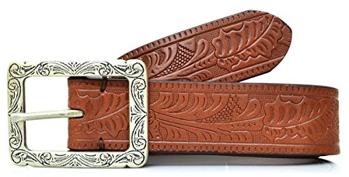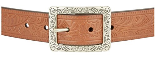 Product DescriptionA Southwestern-inspired pattern embossed on a supple leather belt, featuring a brushed, engraved silvertone buckle. Width, about 1.5. Leather. Imported.0