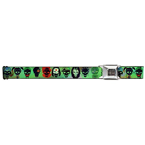 (Buckle Down)/Accessories/Belts Buckles/DIRECT FROM USA/DC COMICS SUICIDE SQUAD Seatbelt Belt - Stylized Character Faces Green