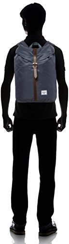 A minimalist Herschel Supply Co. backpack in a smooth weave. A magnetic snap and drawstring secure the top flap. The lined interior has a laptop sleeve against the padded back. Locker loop and padded adjustable shoulder straps.Feature