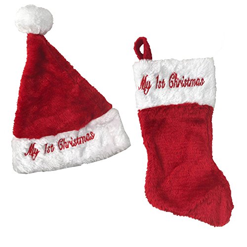 Product DescriptionMy First Christmas Hat and Stocking Set for Baby Boy or Baby Girl - Red Santa - 0-24 Months0