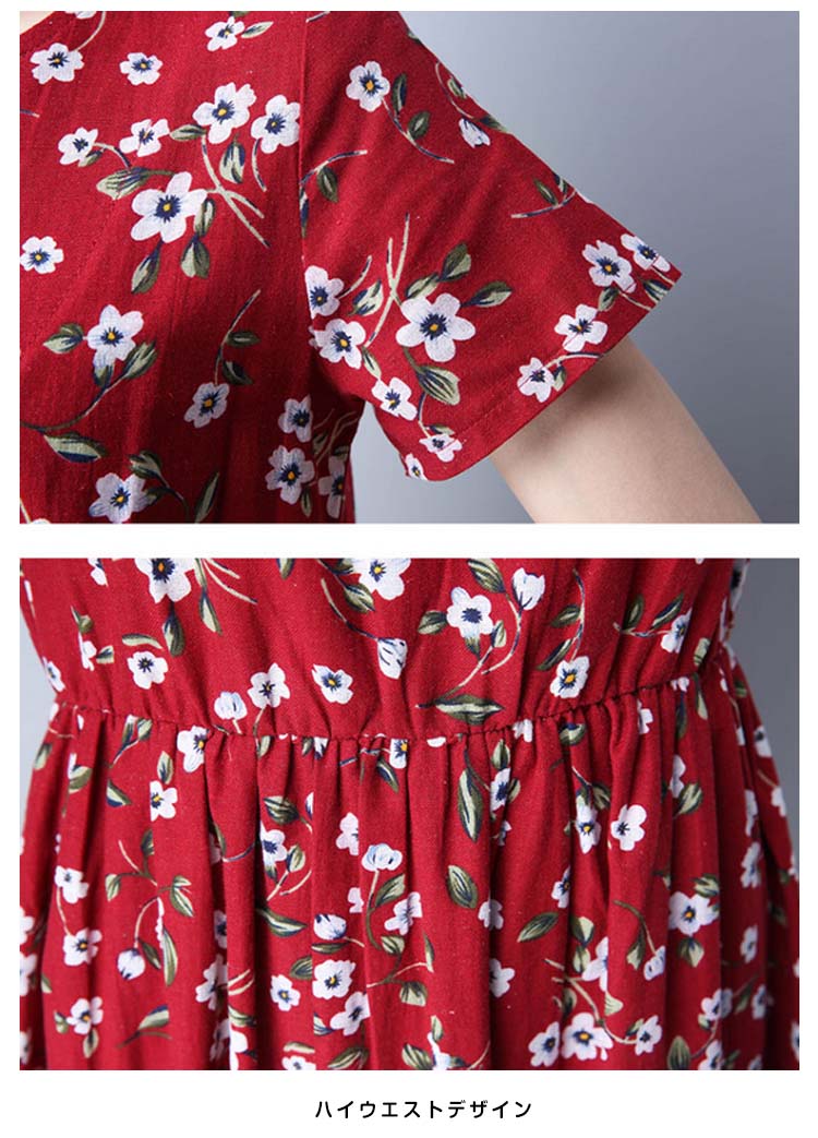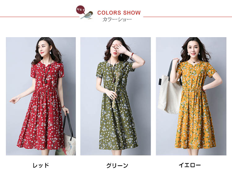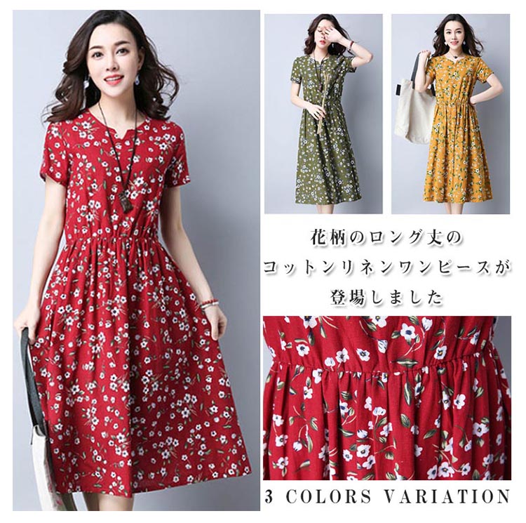 | 花柄のロング丈のコットンリネンワンピースが登場しました 柔らかく涼やかなコットン、リネン素材を使用し、暑い季節もスッキリ着られそう爽やかで清涼感、夏にピッタリ! | |