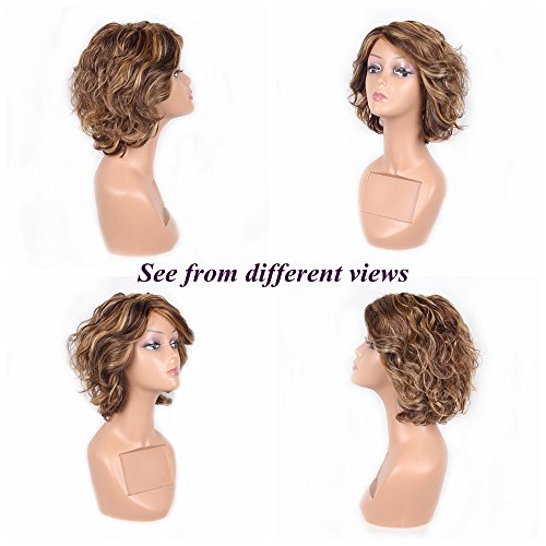 HAIR WAY 100% Remy Human Hair Wigs Short Curly for Women Capless None Lace Human Hair Wigs Curly Short for Daily Wear 8inches #F4/27/613