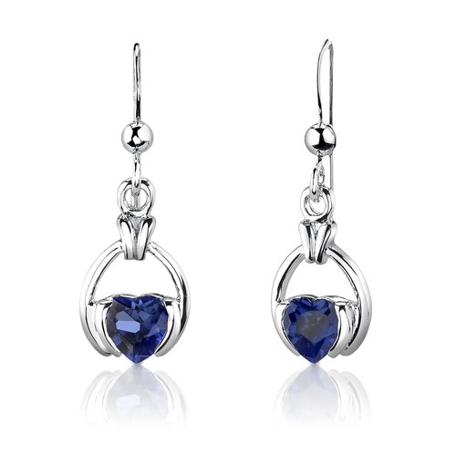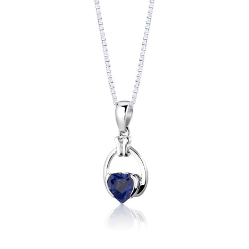 -. Title : Created Sapphire Pendant Earrings Necklace Sterling Silver Rhodium Nickel Finish Simple Heart Shape
