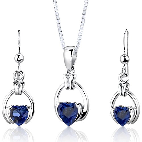 -. Feature : Created Blue Sapphire, Ceylon Blue Hue with Brilliant Sparkle / Pendant and Earrings are in .925 Sterling Silver and finished with Rhodium / Top Quality Craftsmanship / Exceptional Styling / 30 Day Return Policy