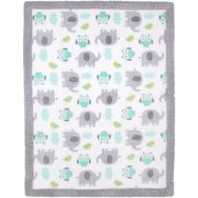 Baby Elephant, Owls and Birds Soft Blanket with Gray Trim