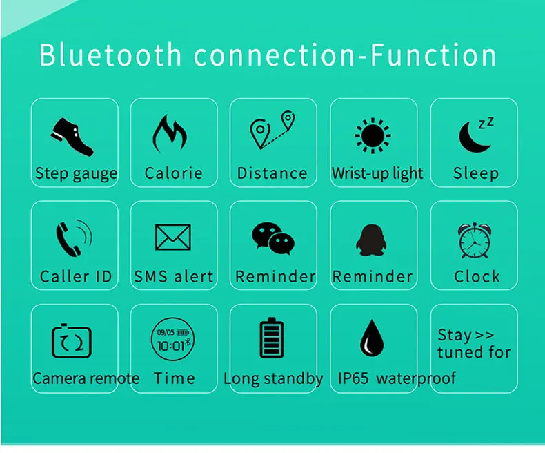 Features:smart reminder, step count,tracking/alarming,remote control self-timer