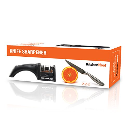 KITCHENKOOL KNIFE SHARPENER, 2 STAGE KNIFE SHARPENING SYSTEM, BLACK
