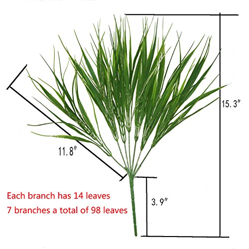 ◆【Family Leisure Time】: • Wheat Grass of Excellent Material,perfect for outdoor / indoor arrangements.Let you experience the joy of relaxing in the ideal home. • Create a colorful centerpiece for outside decor and floral arrangements. • Your families and friends would be deeply attracted,greenery leaves bring the forest straight to you. ★ ★ ★{One square foot requires 3-4 PACK of grass to fill }.★ All faux grass are handmade with love and care by Nepalese or women in remote area - with each purchase you are contributing to their livelihood and better life..◆【ECO-Friendly】: • Gold Standard - Certified Safety 100% SAFE Material. • Certification Wheat Grass of SGS,Organic style to guarantee you 100% SAFE to use indoor / outdoor. ◆【Perfect Decoration】: These Grass will light up any occasion---Add greenery to home centerpiece, kitchen, office table , also UV resistant for garden, verandah, Wedding bouquet.Add color and fullness to any flower arrangement with this artificial plants in green. ◆【Easy to Use】: • This is a artificial green plant, which is constructed of plastic and fabric material. • Fake Grass No need pruning and watering for people who have a busy schedule or but want to enjoy the overflowing of greenery. • Unlike this real plants This silk grass will never die off and easy take care of it. so that it can be a nice decoration for a long time . ◆【Package Content】: Wheat Grass with ☞ 4 Bunches ☜ 7 stems each bunch total 28 stems. Wire stems can be trimmed to any length as you like Material: Plastic,Fabric Type: Plant Length:14.37 inch Leaves Color: Green . ◆【TIPS】: • Placed in ventilated place for 1-2 days. • Note: Since the size above is measured by hand, the size of the actual item you received could be slightly different from the size above.Feature