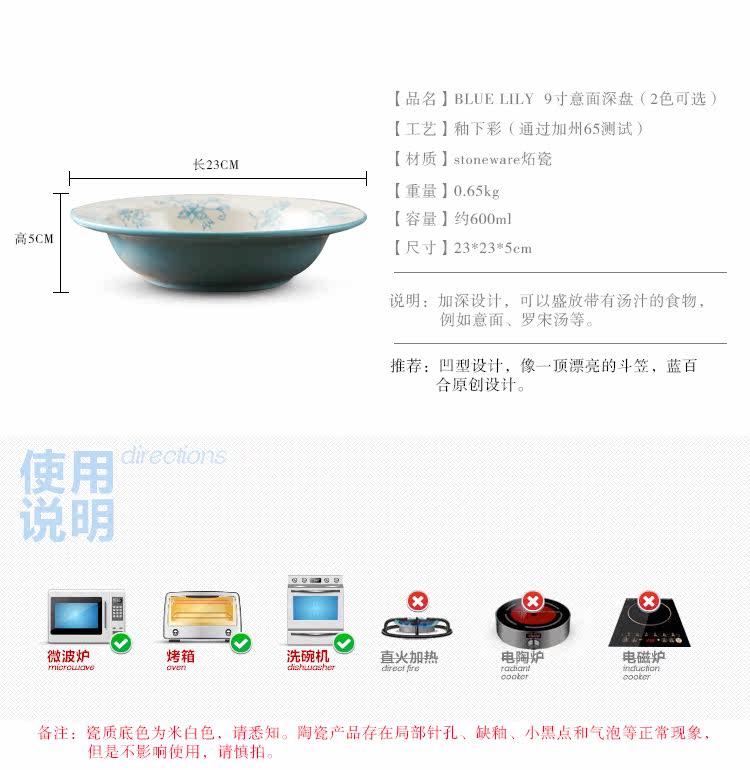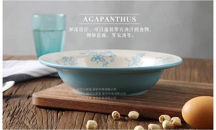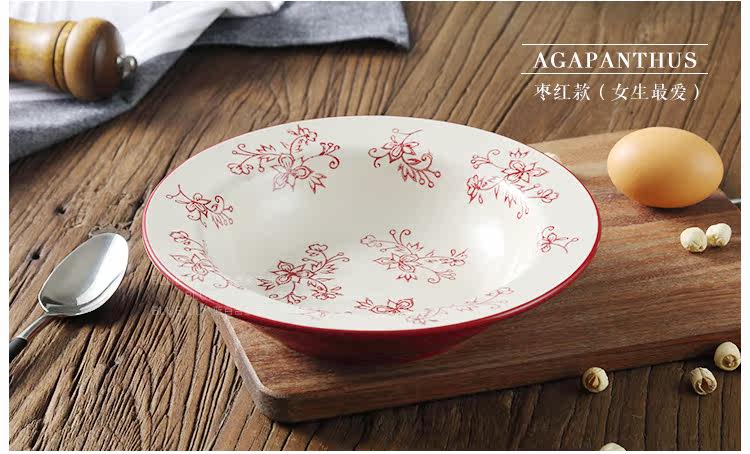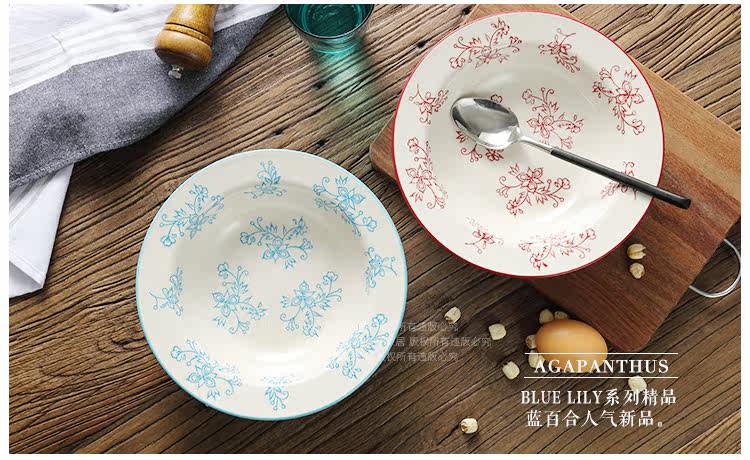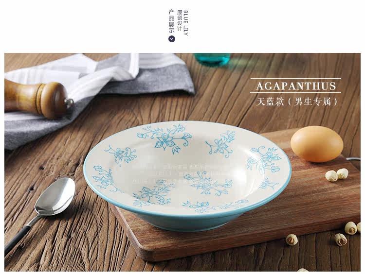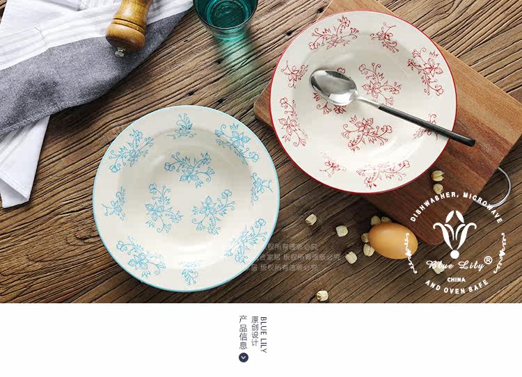 天蓝酒红 欧美创意陶瓷餐具9英寸西餐盘意面盘深圆盘