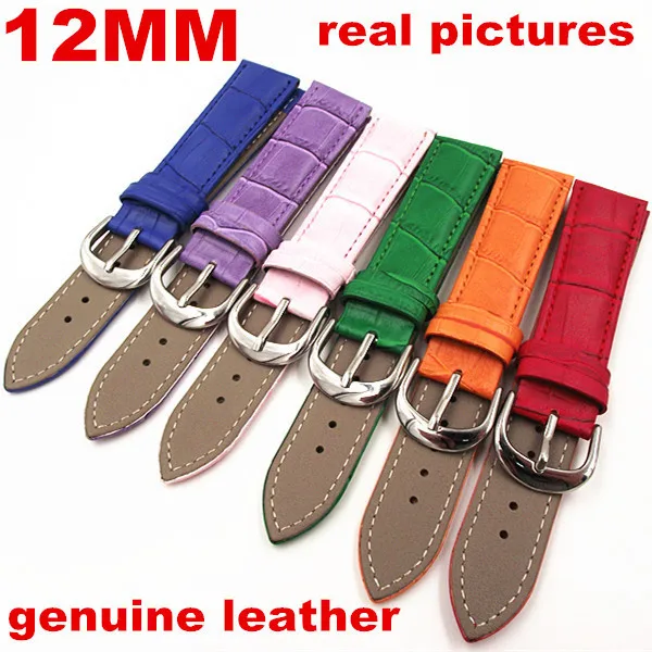 도매 10pcs/lot 12mm 고품질 진짜 가죽 시계 밴드 시계 스트랩 손목 시계 부품 6 색상 가능- wbgl001