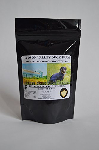 -. Binding : Misc. -. Brand : Hudson Valley Duck Farm -. EAN : 0642213170738 -. Feature : Farm to Pet - Limited Single Ingredient Treat Dogs and Cats Love / Healthy Muscle Meat Treat - Packed with Protein - Zero Grains / Made in NY - Product of the USA / Great For Training or Treating Every Day / Each Bag Contains 3oz of Freeze Dried Duck Hearts and Nothing Else -. Label : Hudson Valley Duck Farm -. Manufacturer : Hudson Valley Duck Farm -. Model : HVDF-DH3 -. MPN : HVDF-DH3 -. NumberOfItems : 1 -. PackageQuantity : 1 -. PartNumber : HVDF-DH3 -. ProductGroup : Pet Products -. ProductTypeName : PET_SUPPLIES -. Publisher : Hudson Valley Duck Farm -. Size : 3 oz -. Studio : Hudson Valley Duck Farm -. Title : Hudson Valley Duck Farm Freeze Dried Duck Heart Dog and Cat Treats -. UPC : 642213170738
