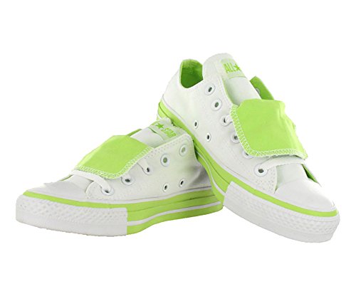 Fun is duplicated with this new version of the classic Converse Chuck Taylor All-Star kicks. This pair of shoes features: Unique double tongue design is made to be folded down in front to show off the contrast color for a true old-school look. Soft canvas upper in a vintage basketball style. Stitching accents and authentic Chuck Taylor side seal. Classic rubber toe cap. Soft fabric lining. Cushioned insole. Vulcanized midsole with color stripe and textured toe bumper. Court style traction outsole. Show your true colors in the Converse Chuck Taylor All-Star Double-Tongue retro shoes!Feature
