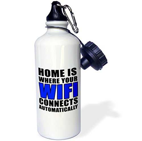 3dRose wb_222835_1 Home Is Where Your Wifi Connects Automatically Blue-Sports Water Bottle, 21 oz, White