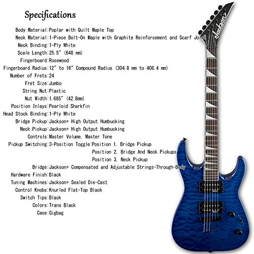 JS시리즈부터 아치 톱의 디《기》가 등장!잭슨의 JS시리즈는,잭슨 기타 만이 가능한 사운드와디자인를 추궁함과 동시에,높은 코스트 퍼포먼스도 달성하게 한 시리즈입니다.JS32TQ DINKY(TM)서는,그라파이트에 강화 된 원피스 메이 Pull 넥,점보《후렛토》를 장비 한 콤파운드 라지 아스 손가락 보드.그리고 킬 텟토 메이 Pull의 화장 판이 시된 버스 우드를 채용한 몸에,볼트-온 따라서 조인트 된DINKY(TM)입니다.DINKY(TM)만이 가능한 아치 드 톱,딥 더블 cutter 웨이를 든 바디디자인서는 우수한 플레이《아비리티》를 실현시킵니다.bridge는,다운 튜닝으로도 최적인 스트링스 루 바디가 되고 있습니다.주요 사양Body Material Basswood with quilt maple topNeck Material 1-Piece Bolt-On Maple with Graphite Reinforcement and Scarf JointNeck Binding 1-Ply WhiteScale Length 25.5'' (648 mm)Fingerboard RosewoodFingerboard Radius 12'' to 16'' Compound Radius (304.8 mm to 406.4 mm)Number of Frets 24Fret Size JumboString Nut PlasticNut Width 1.685'' (42.8mm)Position Inlays Pearloid SharkfinHead Stock Binding 1-Ply WhiteBridge Pickup JacksonR High Output HumbuckingNeck Pickup JacksonR High Output HumbuckingControls Master Volume, Master TonePickup Switching 3-Position Toggle: Position 1. Bridge Pickup, Position 2.Bridge And Neck Pickups, Position 3. Neck PickupBridge JacksonR Compensated and Adjustable Strings-Through-Body■보증:1년
