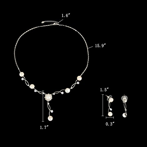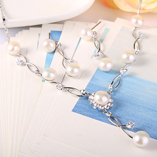 -. Feature : Made of crafted environmental friendly Cubic Zirconias and Simulated Pearls, this jewelry shines with grace and beauty. And the metal surface is of high polished finish. / CZ Color: Clear; Simulated Pearl Color: Ivory Color; Necklace Length: 15.9in-17.4in, Pendant Size: 4.9in by 1.7in; Earring Size: 0.3in by 1.5in; Total Weight: 15g / A ideal accessory to your outfit or as an appropriate gift, e.g.for your Lover, Girlfriend, Wife, Mother, Daughter, Sister, Fiancee, Couple, Valentine or Best Friend,etc; Suitable for daily wear, ball, party, anniversary, prom, graduation, birthday or any special occasions. / The item in picture with ornament is same as the real object without PS. / Exquisite Gift Wrap: Gift Box + Gift Velvet Bag.