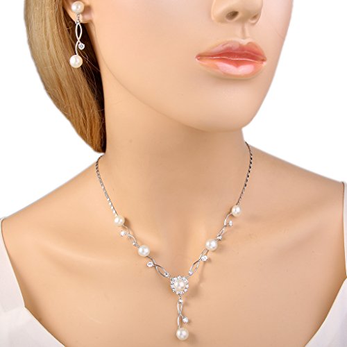 -. Title : EleQueen Women's Cubic Zirconia Simulated Pearl Bridal Necklace Earrings Jewelry Set Ivory Color