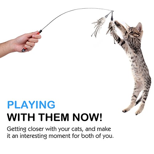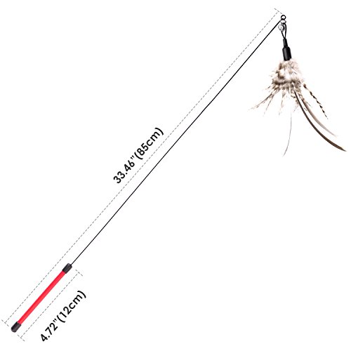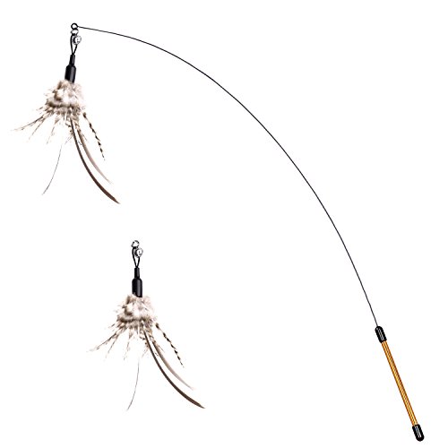 Material: PP Handle Steel Wire Wand Natural Feather Item Length: 37.5 inch(950mm) Item Weight: 0.47 ounces Package: 1 x Feather Wand Cat Toy and one more feather