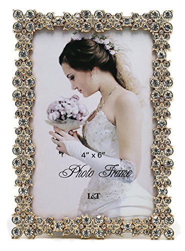 L&T Luxury Metal Picture Frame with Gold Plated and Brilliant Crystals, for 4 x 6 inch Photos
