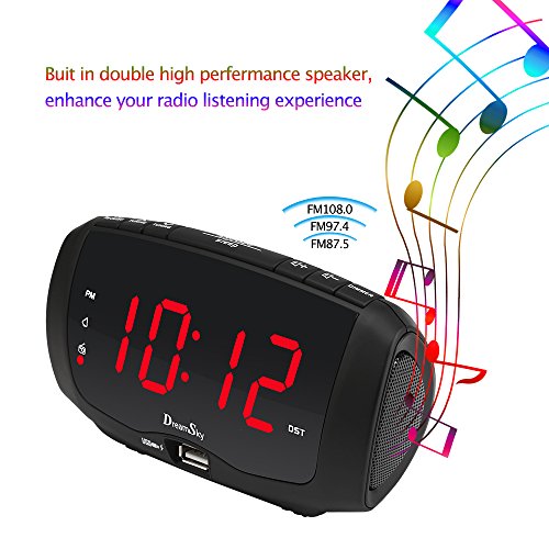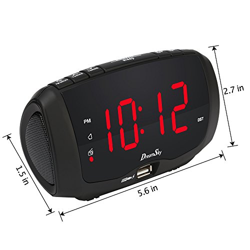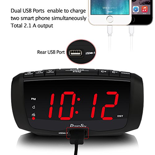 DreamSky Digital Alarm Clock Radio With Dual USB Ports For Phone Charging , FM Radio With Earphone Jack, 1.4" LED Display With Dimmer , Snooze, Adjustable Volume, Sleep Timer, Outlet Powered